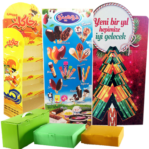 استند طبقاتی : این نوع استند توانایی جایگیری و عرضه محصولات را به صورت نمایشی داراست و قابلیت دایکات و شکل پذیری ورق کارتن پلاست توانایی ساخت ماکت انواع محصول را در ابعاد بزرگتر و کوچکتر از اندازه واقعی امکان پذیر می سازد؛ که این شرایط امکان معرفی و عرضه هر نوع محصول را در هر محلی فراهم می آورد. استندهای ساخته شده از کارتن پلاست امروزه به عنوان معرف قدرت و توانایی های تولید کنندگان، سازمانها و ادارات در هر مکانی از جمله بانک ها، ادارات، فروشگاه ها، نمایشگاه ها و... مورد استفاده قرار می گیرد.